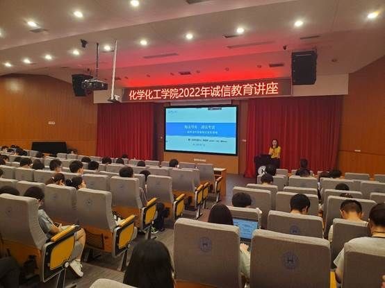 考试诚信教育工作是学生诚信教育的重要环节,也是学生自觉遵守校规校纪、形成良好学风的重要保证。春季学期期末考试和四六级考试即将来临,为做好学生的考试诚信教育工作,树立诚信考试价值观,5月31日晚,化学化工学院邀请我中心秘书邱晓岚在化学报告厅举办了“知法守礼 诚信考试”的主题诚信教育讲座。讲座采取线上线下相结合的形式,参与人数超过500人。