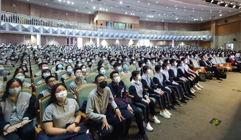 授牌仪式结束后,周大旺副校长为同学们了作《癌症科普:癌症发生、预防与再生医学》专题讲座。讲座中,他以癌症的病因、预防及治疗为切入点,向同学们展示了生命科学学科的独特魅力,强调了其在科学体系中的重要地位。他以厦门大学生命科学学院开展的尖端研究、独特的书院制人才培养模式及优秀的毕业学子为案例,展示了厦大生命科学作为厦门大学优势专业的雄厚科研实力、先进的人才培养理念及广阔的发展前景。最后,周大旺表达了对国家科技未来发展的深切关注和对青少年学子的殷殷期望。他鼓励一中学子积极投身科学研究,勇攀学术高峰,努力成为国家需要的优秀人才。