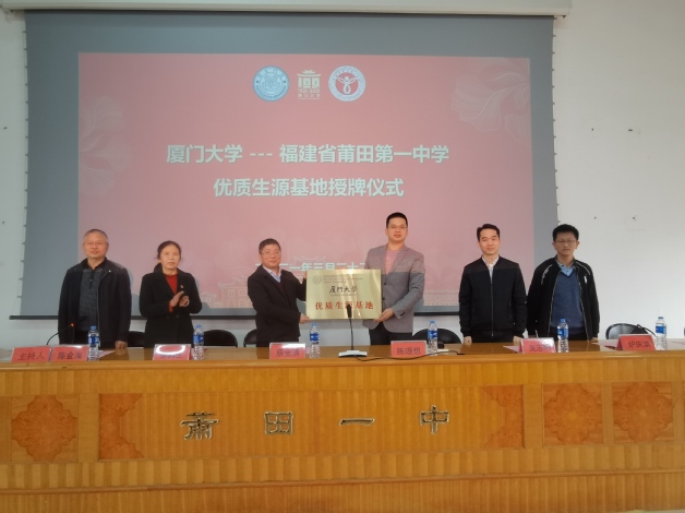 3月22日,我校物理科学与技术学院副院长陈理想教授、物理系副主任吴志明教授、莆田一中校友炉庆洪工程师等一行人赴莆田第一中学举行“优质生源基地”授牌仪式。莆田一中校长蔡金清、副校长邹荔生、陈金海老师等教师与六百余位师生出席了活动。
