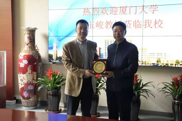 4月23日上午,厦门大学数学科学学院副院长朱玉峻教授赴河北省石家庄二中参加“厦门大学优质生源基地”授牌仪式。石家庄二中副校长王河宁,教务处主任顾小青、副主任刘小杰,高三年级主任李建鹏出席活动。