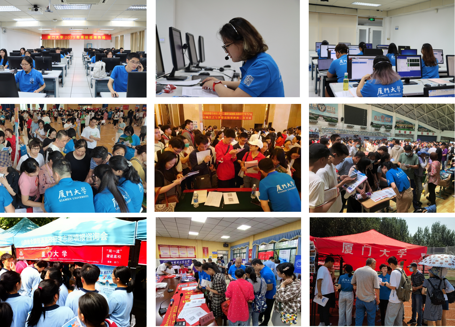 高招季期间,全校招生宣传组分赴全国各地,在校友的大力支持下,开展了近400场高招咨询会,各地学子对报考厦门大学展现出极大的热情,咨询现场人头攒动、气氛火爆。在线上,学校开设了39个分省(市)QQ咨询群,宣传组老师、学生志愿者牺牲个人休息时间,几乎全天候在线为考生、家长答疑解惑。此外,各学院还组织专业教师开展了27场“厦大教授带你选专业”系列直播,带领考生深入了解不同学科专业的特点、人才培养政策、未来发展前景等,吸引更多与厦门大学同频共振的有志青年报考。