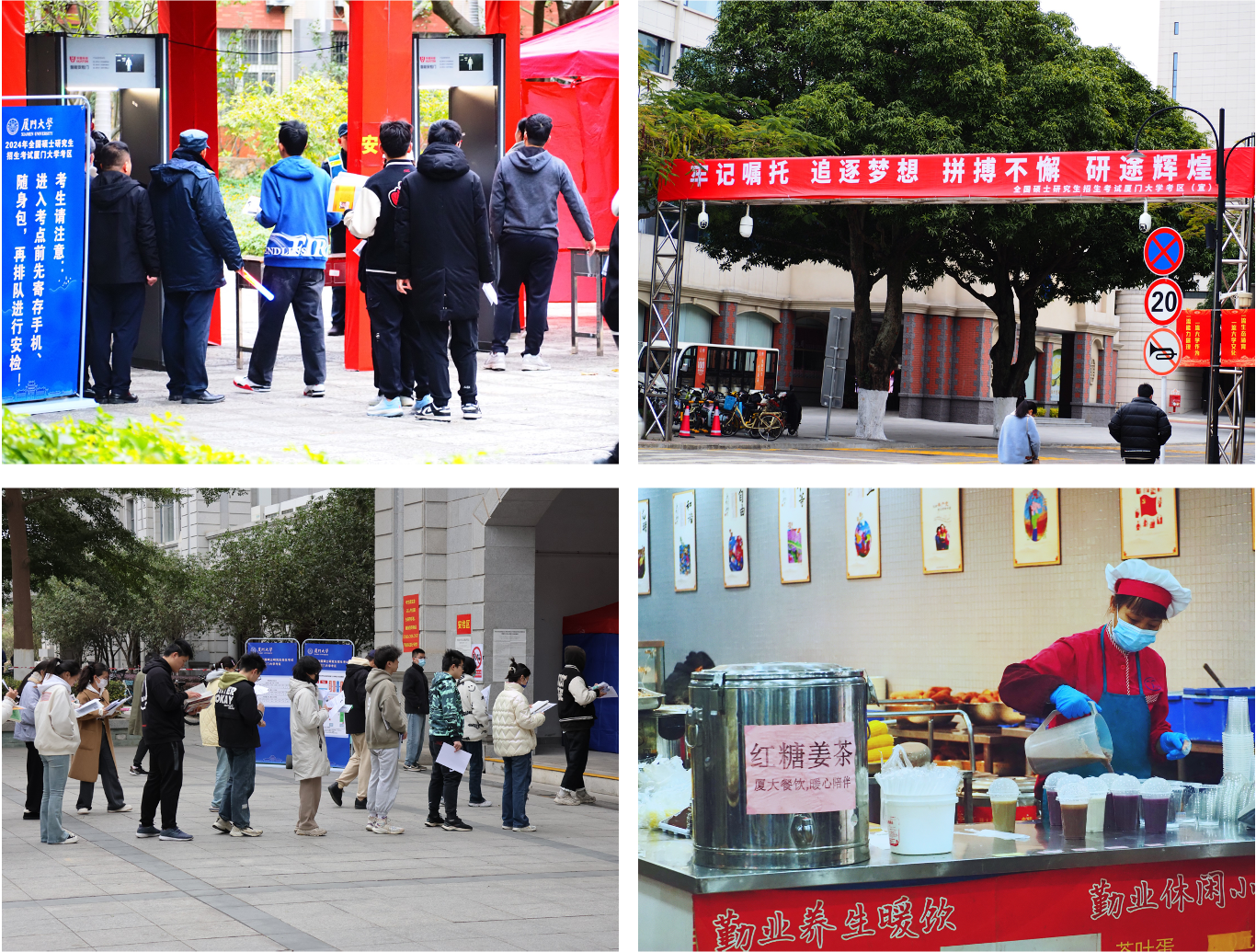 为优化考生服务,考前学校还通过微信公众号发布考试温馨提醒,在现场放置考场考点分布图和路标指引牌,帮助考生顺利抵达考场。同时,食堂也为考生提供了暖心姜茶,学院准备考研大礼包,为冬日赶考的学生们送上了温暖和祝福。
