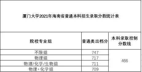 厦门大学2021年普通本科招生录取统计(普通一本)