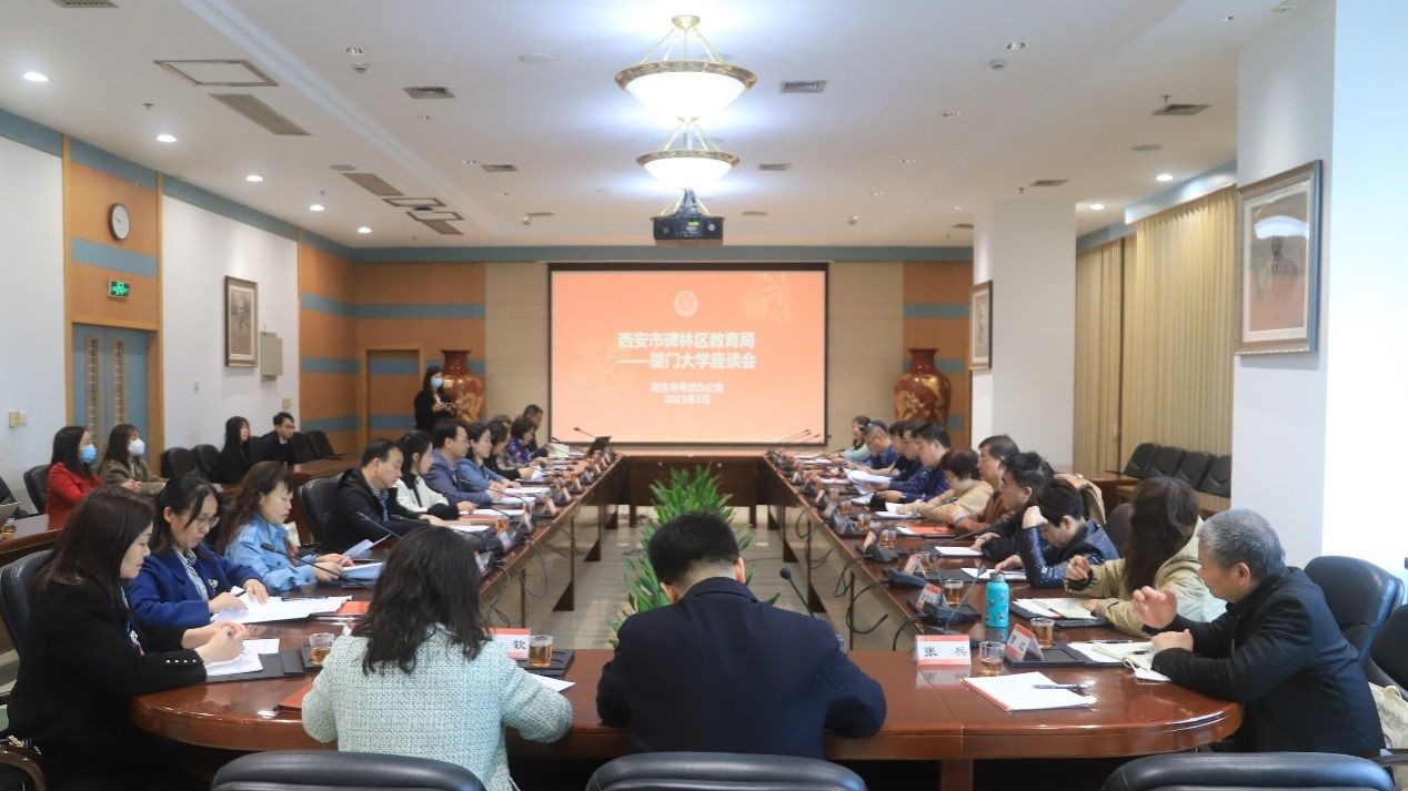 王晓萌向前来参加交流的领导、老师们介绍了厦门大学与陕西省的校地情缘,新高考模式下厦门大学招生录取方式及在陕招生情况。厦门大学迄今已为陕西省培养了三千余名优秀学子,也引进了诸多陕西籍优秀师资人才。希望双方能够加强交流,协同合作,共同履行为党育人、为国育才的光荣使命。