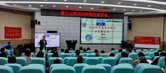 在成都第七中学,黄玥教授详细介绍了厦门大学的历史、学科建设和招生情况,并结合厦门大学航空航天学院的办学优势,鼓励有志于航空航天领域研究的同学积极报考。侯旭教授做主题为“仿生科学”的科普报告。“生命科学与工程技术科学怎样融合?”“什么是材料仿生和力学仿生?”声情并茂的演讲让在场学生从中体验了生命的奥妙和科研的魅力,深切感受到了厦大名师科技强国的历史使命和创新报国的高尚情怀,现场气氛十分热烈。成都第七中学副校长蔡泽勇主持了活动。