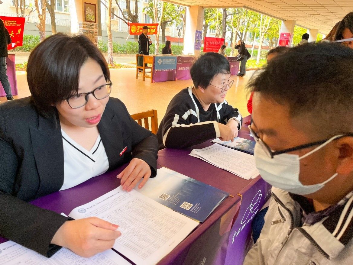 在现场咨询活动中,厦门大学咨询台前人头攒动,前来咨询的学生和家长络绎不绝。招生宣传组老师与学生和家长进行了亲切的面对面交流,耐心解答专业选择、报考、招生政策、就业前景等问题。