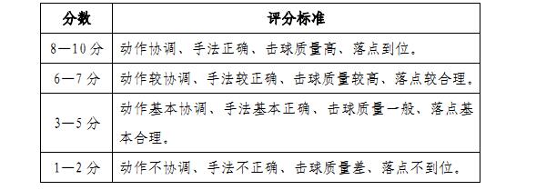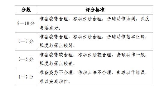 2.正手击后场高远球: 50分(其中达标40分,技术等级评分为10分)。