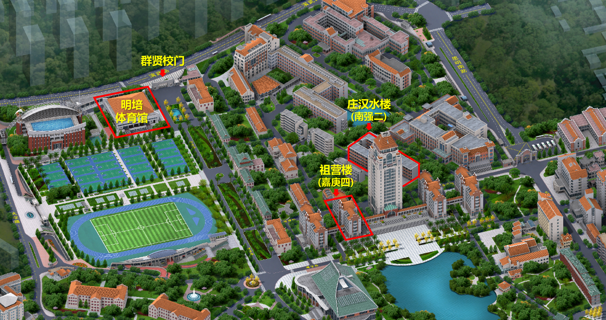 3.请考生准时到录检地点报到,录检地点:厦门大学思明校区明培体育馆东门(靠近演武体育场)。具体安排: