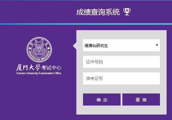 厦门大学2019年面向香港、澳门、台湾地区招收研究生初试成绩已经公布,请考生进入成绩查询系统(网址http://kszx.xmu.edu.cn/index.php/welcome/score.html),选择查询项“港澳台研究生”,凭本人通行证号码(即证件号码)和考生编号(即准考证号)即可查询。以上个人信息均可从考生本人的准考证上获取。建议使用谷歌浏览器查询。