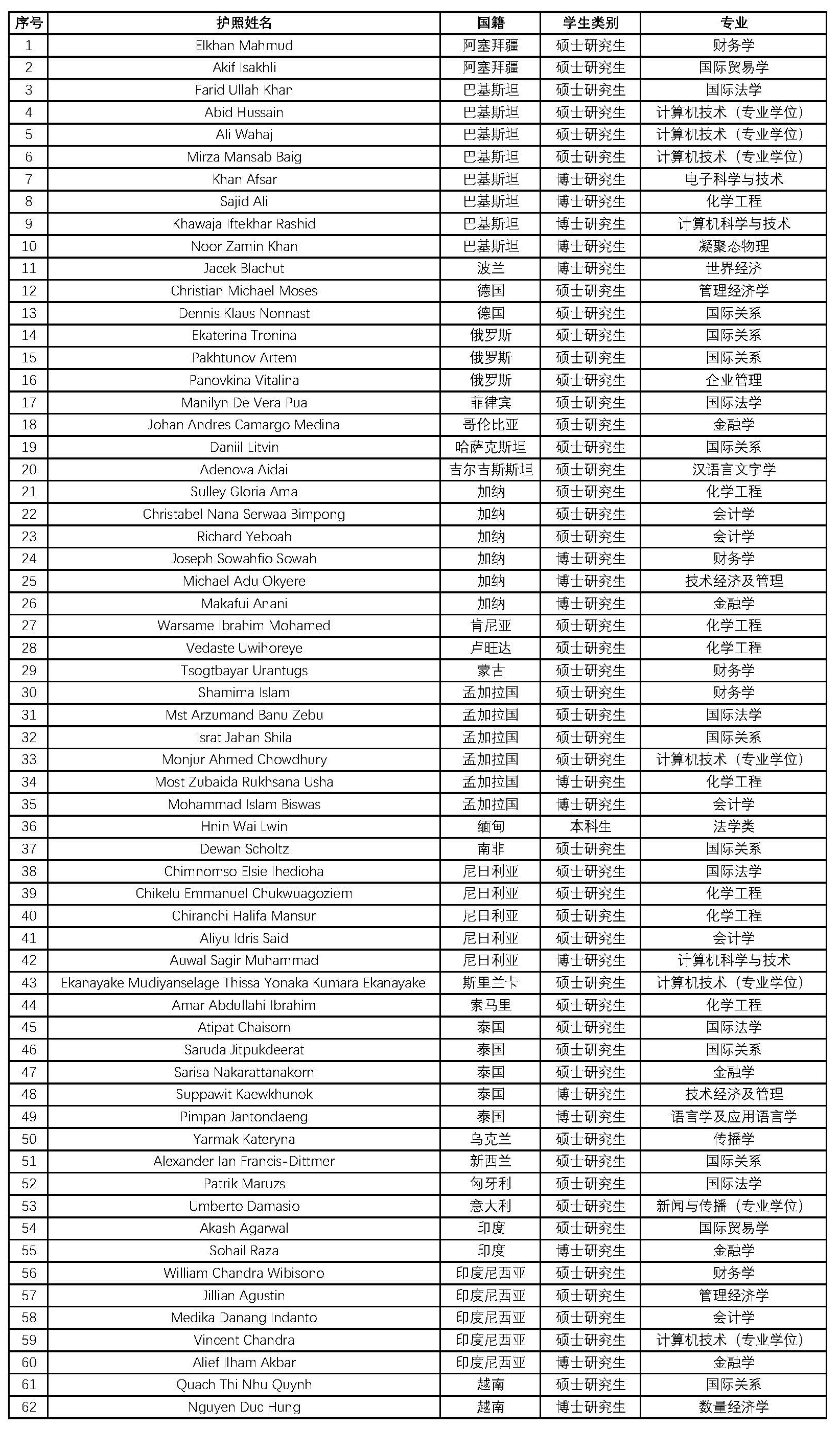 厦门大学2019年中国政府奖学金(高校自主招生项目)获奖名单