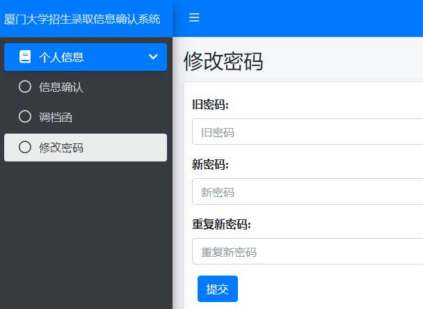 1.考生登录厦门大学招生录取信息确认系统(http://zsxxqr.xmu.edu.cn),初始用户名为【证件号码】(与博士生报名证件号码一致),密码为【移动电话号码】(与博士生报名时填的手机号一致)。
